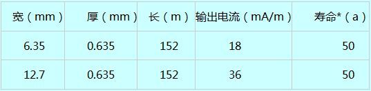 ② 常用帶狀鎂陽極規(guī)格